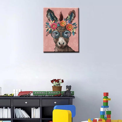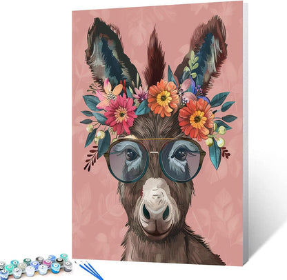 Peinture par numéros d'un âne portant de grandes lunettes de soleil et un chapeau de paille