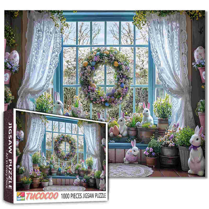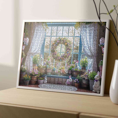 Puzzle de fenêtre de jardin de lapin de Pâques