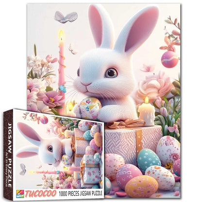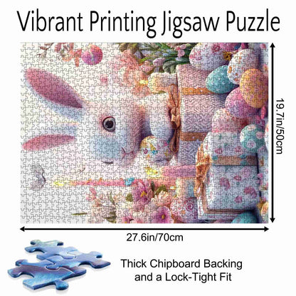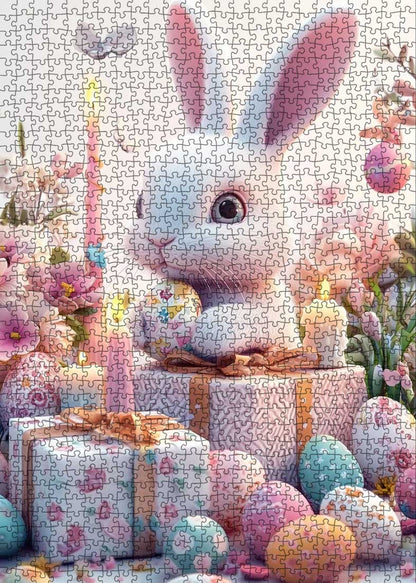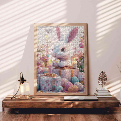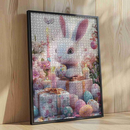 Un lapin de Pâques espiègle entouré d'œufs joliment décorés, de cadeaux aux couleurs pastel et de fleurs douces. Cette scène réconfortante capture la joie de cette période de l'année, parfaite pour les amateurs de puzzles qui chérissent l'esprit de Pâques. Que vous réalisiez ce puzzle en famille ou en solo, il vous fera sourire. Ses couleurs douces et ses images ravissantes en font un ajout parfait à toute collection de puzzles.