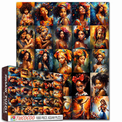 Célébrez la diversité et le dynamisme de la culture africaine avec notre puzzle Expressions of Beauty. Ce puzzle captivant de 1 000 pièces présente un superbe collage de femmes afro-américaines, chaque portrait débordant de vie et de couleurs, reflétant un large éventail d'émotions et de styles. Des sourires radieux aux regards pensifs, ce puzzle honore la beauté et la force inhérentes à chaque expression. Parfait pour ceux qui apprécient la représentation culturelle et l'art dans leurs puzzles.