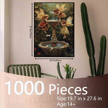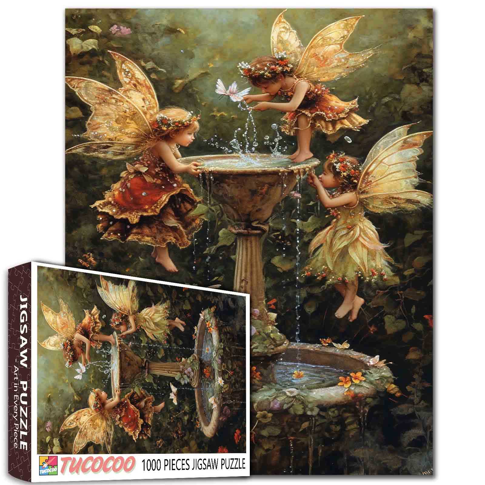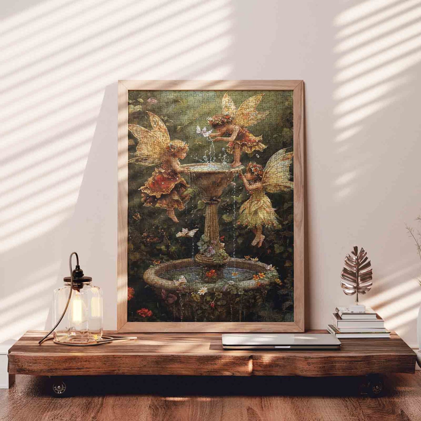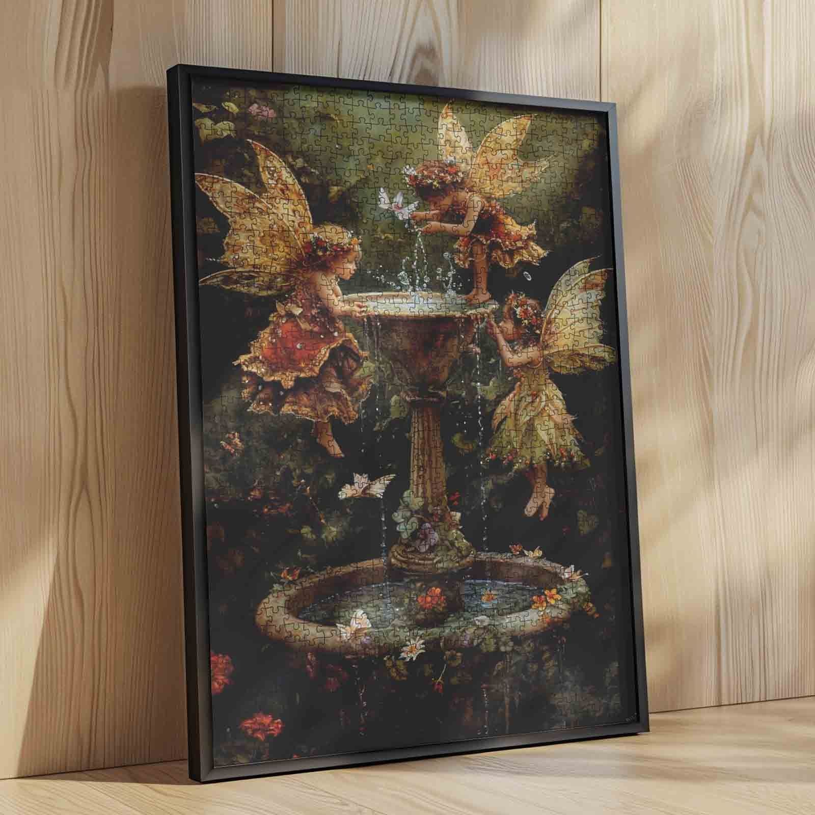 Plongez dans un monde magique avec le puzzle Fontaine des Fées. Ce tableau enchanteur met en scène quatre fées délicates aux ailes dorées scintillantes, joyeusement rassemblées autour d'une vieille fontaine en pierre au cœur d'un jardin forestier luxuriant. Entourées de papillons, de gouttelettes lumineuses et de fleurs épanouies, les fées semblent animer la fontaine avec leur énergie joyeuse et leur innocence. Chaque détail, de leurs robes bordées de pétales aux douces ondulations de l'eau, est un plaisir à reconstituer. Idéal pour les amateurs de contes de fées, les jardiniers rêveurs et tous ceux qui recherchent une évasion paisible et imaginative, ce puzzle offre une expérience relaxante et enrichissante. Que vous l'encadriez ou que vous preniez plaisir à le reconstituer à maintes reprises, il deviendra un ajout charmant à votre collection.