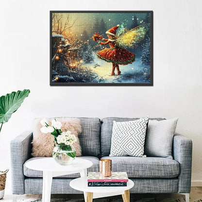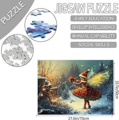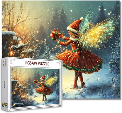- Ce puzzle magique de Noël représente une belle fée aux ailes scintillantes, livrant des cadeaux dans une forêt enneigée. Elle est vêtue d'une robe rouge festive et d'un bonnet de Père Noël, avec des lumières étincelantes scintillant en arrière-plan. Ce puzzle apportera à coup sûr la joie des fêtes à votre maison.
