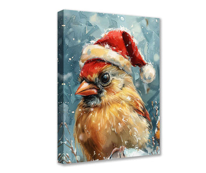 Décoration murale sur toile représentant un cardinal festif portant un chapeau de Père Noël