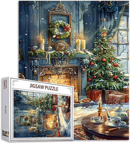 - Cette scène de Noël chaleureuse est le moyen idéal pour se détendre et se relaxer pendant cette période des fêtes. Rassemblez-vous autour du feu crépitant avec une tasse de thé chaud et profitez de la neige qui tombe à l'extérieur. Avec un sapin de Noël joliment décoré, une couronne festive et un feu chaleureux, ce puzzle apportera un sentiment de paix et de joie à votre maison.
