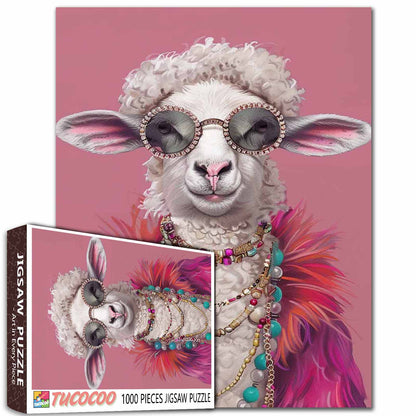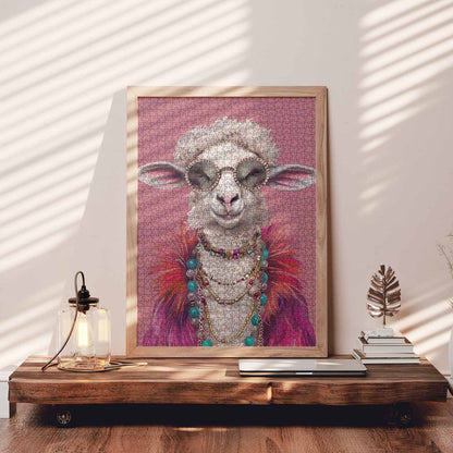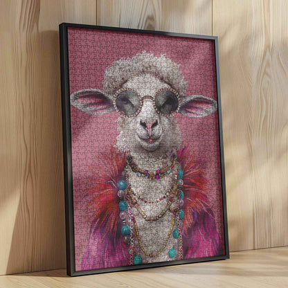 Ce mouton élégant respire l'assurance avec ses lunettes de soleil étincelantes et sa collection de bijoux éclatante. Orné de colliers colorés et d'un magnifique collier à plumes, il est prêt à défiler. Sa personnalité à la fois ludique et chic transparaît, offrant une ambiance ludique et tendance qui ajoute du charme à tout espace. Les détails complexes de ce mouton tendance en font un puzzle ravissant à assembler, parfait pour celles qui aiment les animaux et les designs élégants.