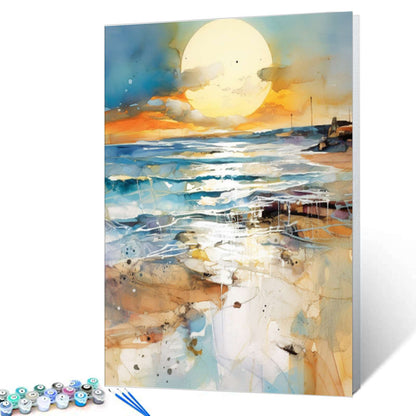Plongez dans ce paysage marin radieux, capturant la lueur dorée du soleil se reflétant sur les vagues tranquilles de l'océan et le rivage sablonneux. Parfait pour les adultes comme pour les débutants, ce kit de peinture par numéros facile à suivre donne vie à une escapade apaisante en bord de mer à chaque coup de pinceau.