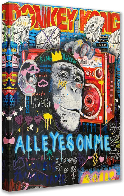 Peintures de chimpanzés colorés avec graffitis sur toile