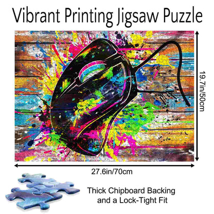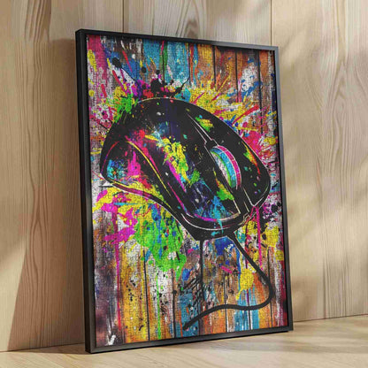 Plongez dans le chaos avec ce puzzle éclatant. Une souris de jeu élégante explose sur la surface, entourée d'éclaboussures néon roses, vertes, jaunes et bleues. Les éclats de peinture sauvages reflètent l'adrénaline de chaque mouvement dans le jeu, transformant un simple outil en un symbole de contrôle et de vitesse recouvert de graffitis. Avec ses textures brutes et son ambiance électrique, ce puzzle est un incontournable pour les joueurs et les amateurs de street art.