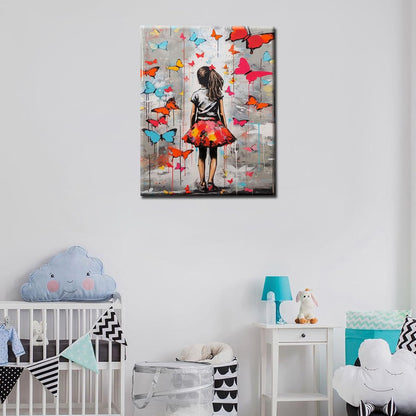 Fille graffiti entourée de papillons colorés Peinture par numéros