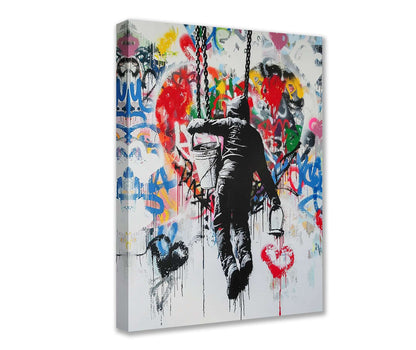 Cette œuvre d'art graffiti saisissante représente un artiste de rue suspendu avec un pot de peinture, créant un cœur vibrant au milieu de couleurs vives et de tags expressifs. La pièce capture l'esprit de créativité et de rébellion, mélangeant l'art urbain avec une touche d'émotion. Parfaite pour les amateurs de décoration moderne, cette toile ajoute de la personnalité et du caractère à n'importe quel espace, symbolisant la passion et la liberté. Imaginez cette œuvre d'art unique sur votre mur, apportant une ambiance urbaine avec un message sincère.