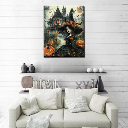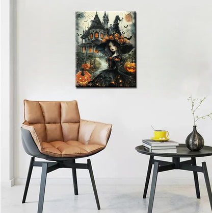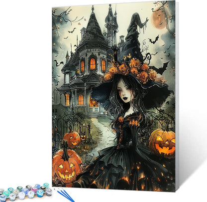 Château gothique d'Halloween Sorcière noire Peinture par numéros