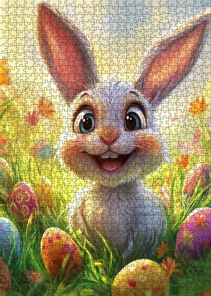 Ce ravissant puzzle représente un joyeux lapin de Pâques au grand sourire, entouré d'une multitude d'œufs colorés et décorés, nichés dans l'herbe douce. L'expression joyeuse du lapin capture l'esprit de Pâques, tandis que les œufs éclatants ajoutent une touche festive à la scène. Parfait pour les petits comme pour les grands, ce puzzle apporte le charme du printemps et la joie de Pâques à votre intérieur. Avec ses couleurs vives et son design ludique, c'est une merveilleuse façon de célébrer les fêtes.