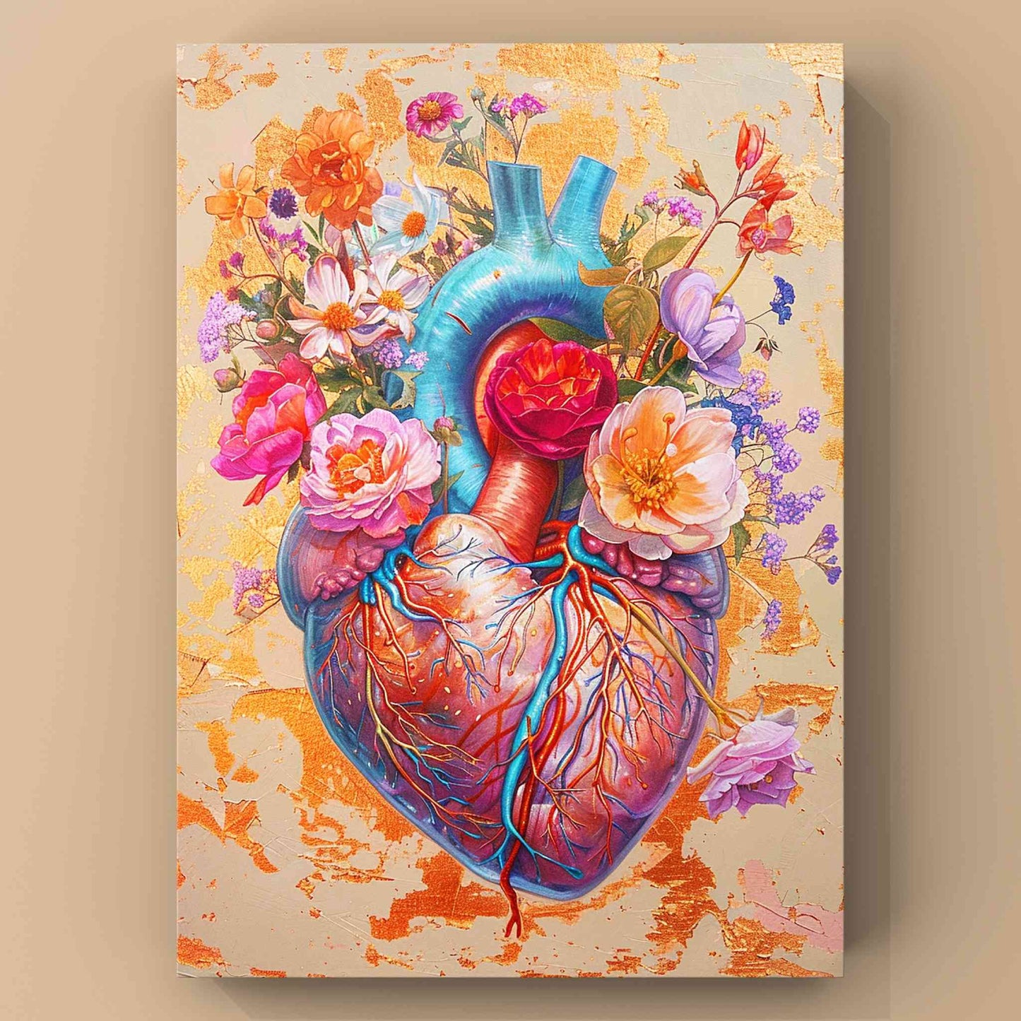 Le cœur vibrant s'épanouit avec des fleurs colorées, créant un chef-d'œuvre qui symbolise la vie et la vitalité. Pouvez-vous sentir le battement de cœur de cette œuvre d'art époustouflante ? Décorez vos murs avec cette pièce captivante et laissez-la parler à votre âme.