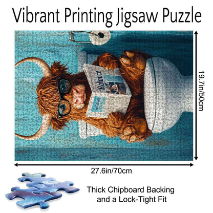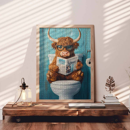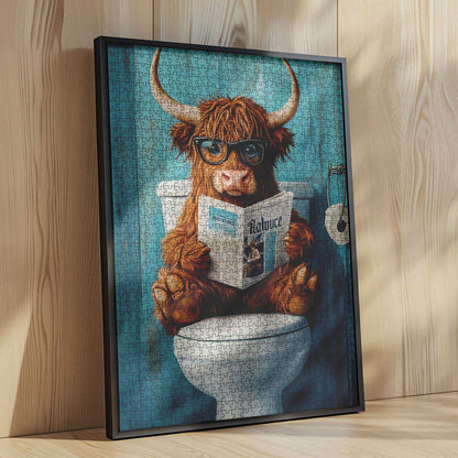 Puzzle : Vache des Highlands lisant un journal sur les toilettes