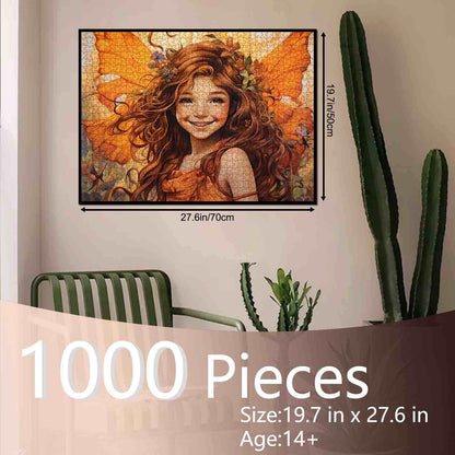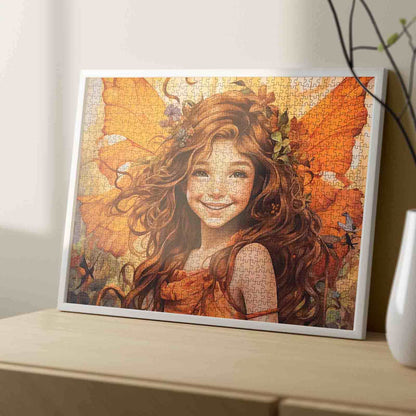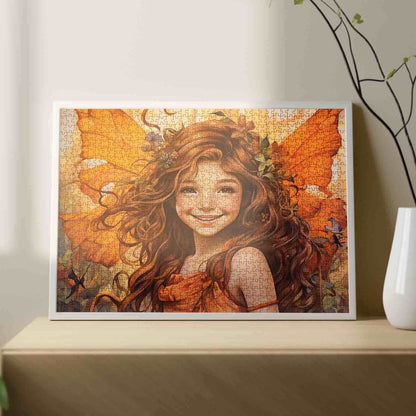 Puzzle Fée joyeuse aux ailes oranges et à la couronne de fleurs