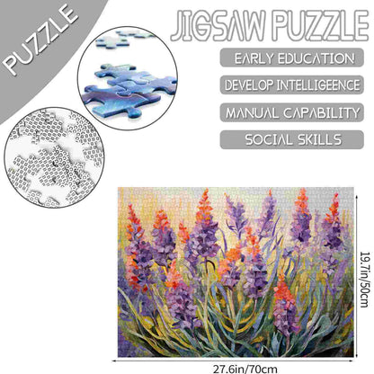 Évadez-vous dans une prairie paisible et magnifique avec ce superbe puzzle Champ de lavande. Ce puzzle de 1000 pièces présente des couleurs vives et des détails complexes qui vous mettront au défi et vous raviront. Au fur et à mesure que vous assemblerez le puzzle, vous vous sentirez transporté dans un cadre serein et relaxant. C'est une activité parfaite pour une soirée de détente ou un projet de week-end amusant.