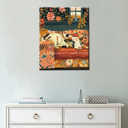 Vache de loisir allongée sur un canapé Peinture par numéros