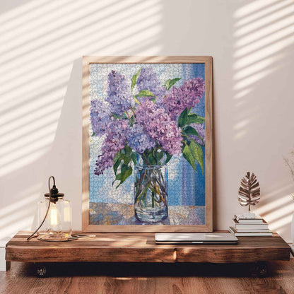 Apportez une touche printanière à votre intérieur avec ce magnifique puzzle Bouquet de lilas. Les couleurs vives et les détails complexes des lilas dans un vase vous mettront au défi et vous raviront lorsque vous assemblerez ce superbe puzzle. C'est le moyen idéal pour se détendre et se relaxer après une longue journée, et le puzzle terminé sera un bel ajout à n'importe quelle pièce.
