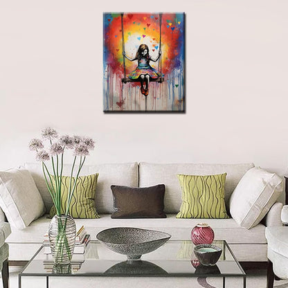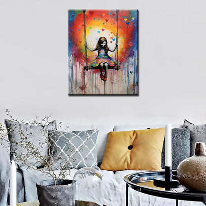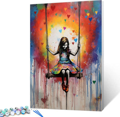 Peinture par numéros de petite fille sur une balançoire