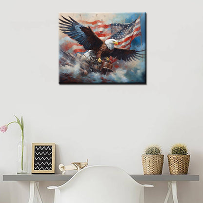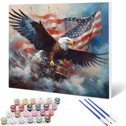 Transformez cette scène puissante en œuvre d'art : un majestueux pygargue à tête blanche se tient au sommet d'une épave de navire avec le drapeau américain flottant hardiment derrière. Ce design capture la force et le patriotisme, ce qui le rend parfait pour les artistes de tous niveaux. Donnez vie à cette image emblématique et ajoutez une pièce inspirante à votre décor.