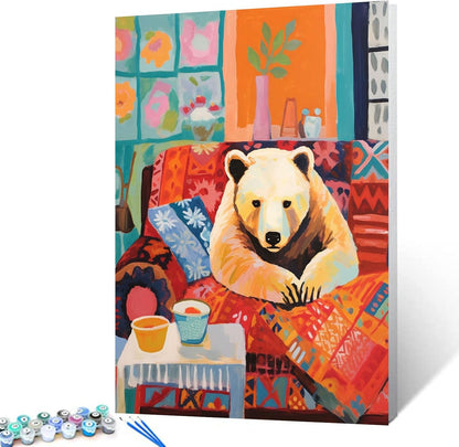 Ours polaire allongé sur un canapé Peinture par numéros