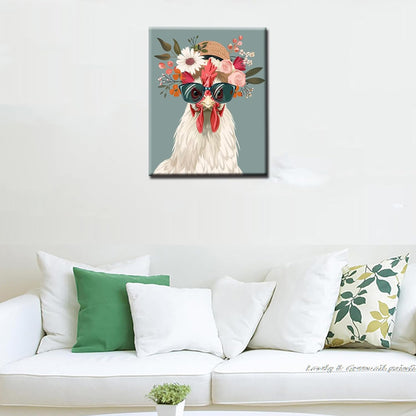 Coq portant des lunettes de soleil et un chapeau de paille - Peinture par numéros