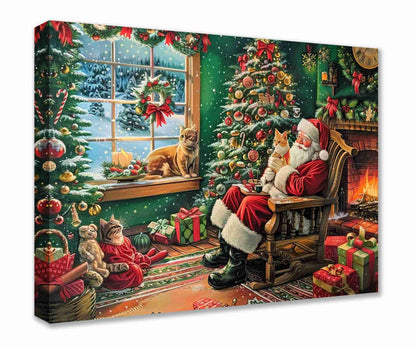 Le Père Noël se détend près de la cheminée, entouré de chats joyeux, de décorations festives et de cadeaux joliment emballés. Un chat se repose dans ses bras, tandis que d'autres profitent de l'atmosphère chaleureuse de Noël près du sapin scintillant. À travers la fenêtre, un pays des merveilles enneigé complète cette scène de vacances réconfortante. Cette œuvre d'art est parfaite pour les amoureux des chats et pour tous ceux qui cherchent à ajouter une touche de chaleur et de charme à leur décoration de Noël. Laissez le Père Noël et ses amis félins apporter l'esprit de Noël dans votre maison.