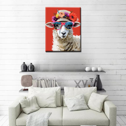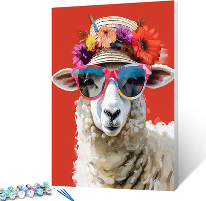Peinture par numéros de moutons portant des lunettes de soleil et un chapeau de paille