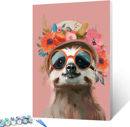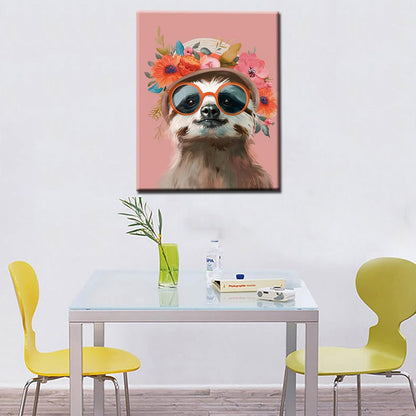 Paresseux avec de jolies lunettes de soleil et un chapeau de paille Peinture par numéros