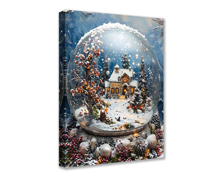 Cette œuvre d'art enchanteresse capture un chalet d'hiver douillet niché à l'intérieur d'une boule à neige magique. Entourées d'arbres enneigés et de décorations festives, les lumières brillantes de la maison apportent de la chaleur à la scène enneigée. Les détails complexes, du paysage enneigé à la petite maison, évoquent le charme et l'émerveillement d'un Noël classique. Parfaite pour ajouter une touche de magie des fêtes à votre maison, cette toile vous transporte dans un pays des merveilles hivernal à chaque fois que vous la regardez.