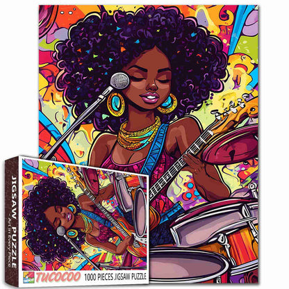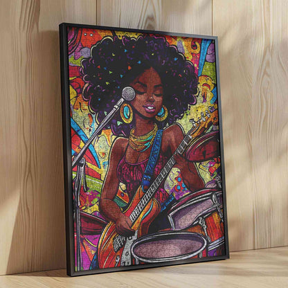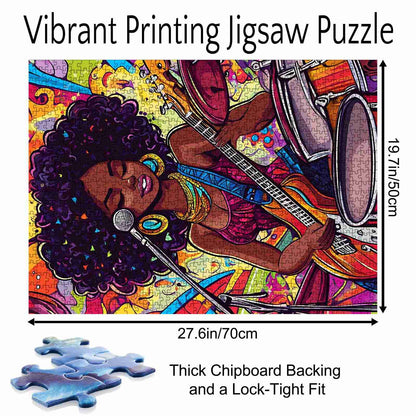 Plongez au rythme de ce puzzle vibrant mettant en scène une guitariste pleine d'âme, absorbée par la musique. Sa passion transparaît à travers des motifs colorés, créant une scène électrisante d'expression musicale pure. Un incontournable pour les amateurs de musique et de puzzles.