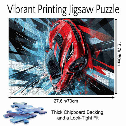Une supercar rouge élancée fonce à toute allure, traversant une explosion d'éclats de verre et de traînées lumineuses. L'énergie est électrique, comme si vous assistiez à l'instant même où la puissance se transforme en mouvement. Des reflets irréguliers et des angles vifs accentuent la vitesse, tandis que des rouges profonds et des bleus glacés s'entrechoquent derrière la voiture, créant une sensation d'impact spectaculaire. En assemblant chaque pièce, vous pouvez presque entendre le rugissement du moteur et sentir les pneus fendre les rues chargées d'adrénaline. Un puzzle palpitant pour les amateurs de vitesse, les fans de course et tous ceux qui rêvent de vitesse.