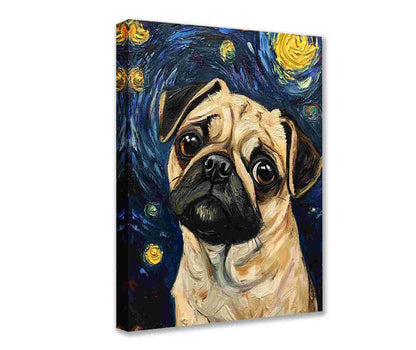 Toile murale inspirée de la nuit étoilée représentant un carlin