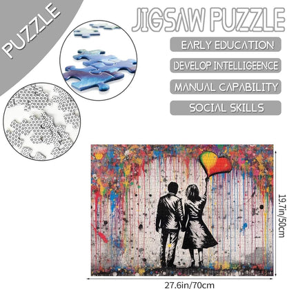 Puzzles d'art Banksy représentant un couple amoureux dans la rue