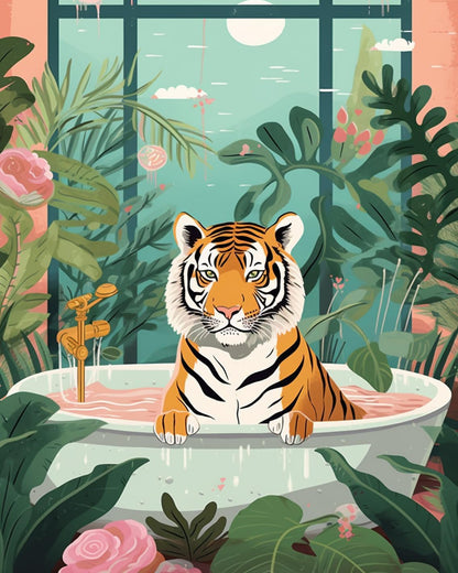 Tigre dans la baignoire - Peinture par numéros