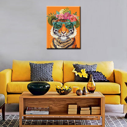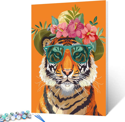 Tigre portant des lunettes de soleil et un chapeau à fleurs Peinture par numéros