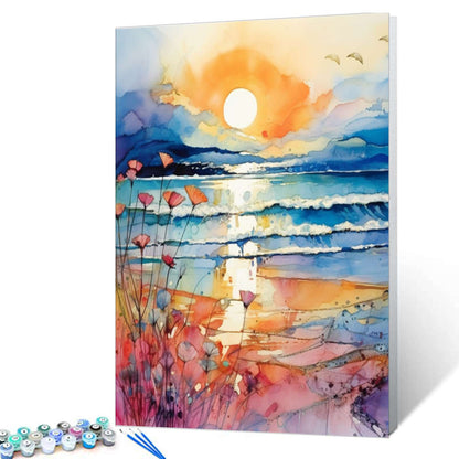 Plongez dans les teintes apaisantes d'un coucher de soleil en bord de mer avec ce kit de peinture par numéros. Le soleil vibrant projette une lueur chaleureuse sur les douces vagues qui clapotent sur le rivage, encadrées par de délicates herbes de plage. Parfait pour les débutants et les adultes, ce kit vous permet de recréer la sérénité de la plage dans votre propre espace.