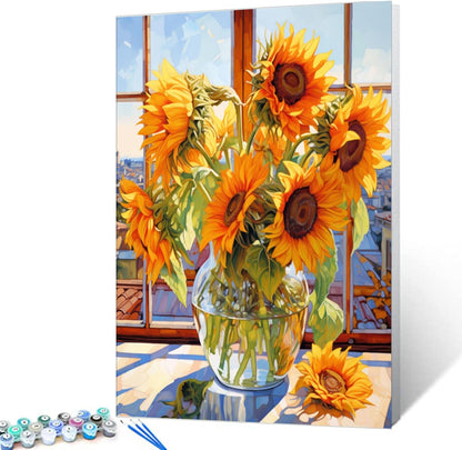 Tucocoo Tournesols DIY Peinture par numéros pour adultes Fleurs dans un vase en verre