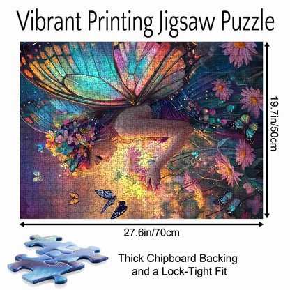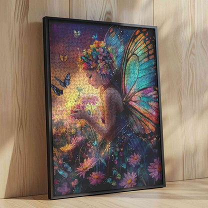 Plongez dans un monde d'enchantement avec notre puzzle Fée Papillon Crépuscule. Ce magnifique puzzle de 1000 pièces représente une fée délicate ornée d'ailes de papillon vibrantes, immergée dans un jardin crépusculaire. Entourée de papillons flottants et de fleurs épanouies, elle interagit tendrement avec la nature, évoquant un sentiment de paix et d'émerveillement. Les couleurs riches et vives et les détails complexes créent une atmosphère magique qui captive et ravit les amateurs de puzzles de tous âges.