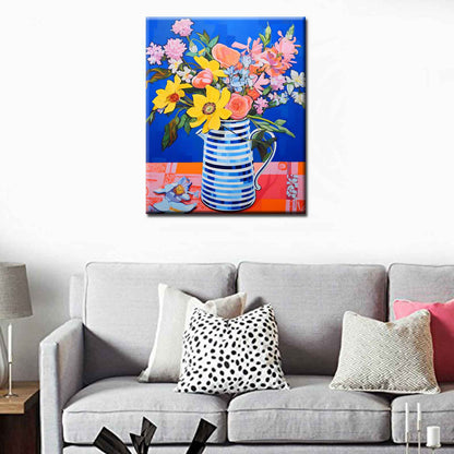 Libérez l'artiste qui sommeille en vous avec ce superbe kit de peinture par numéros représentant un bouquet de fleurs vibrant dans un vase à rayures bleues et blanches. Les couleurs vives et les détails complexes de ce tableau apporteront une touche de vie et d'énergie à votre intérieur. C'est un projet parfait pour les débutants comme pour les artistes expérimentés. Profitez du processus thérapeutique de la peinture et créez une belle œuvre d'art à chérir pendant des années.