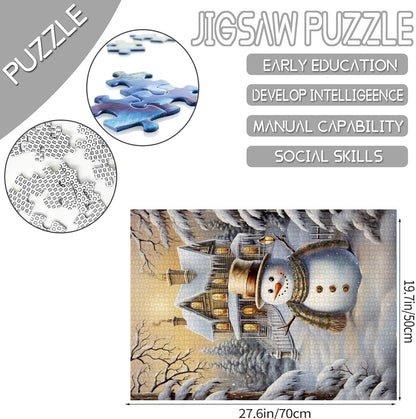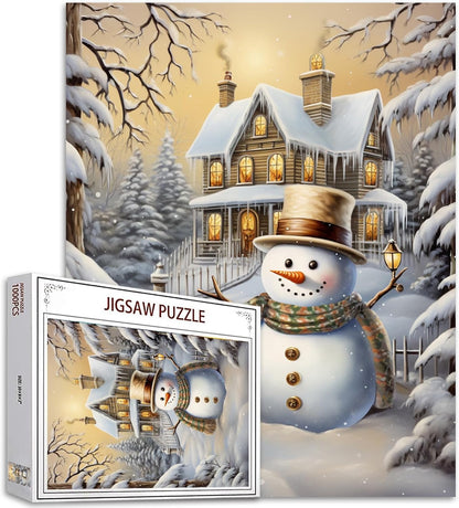 - Ce charmant puzzle présente une scène hivernale enneigée avec une maison douillette, un bonhomme de neige sympathique et des lumières étincelantes. C'est le moyen idéal d'apporter la chaleur et la joie des fêtes dans votre maison !