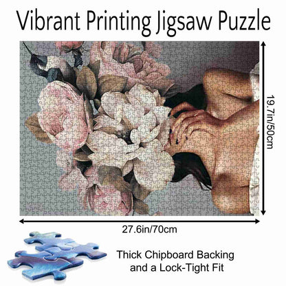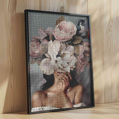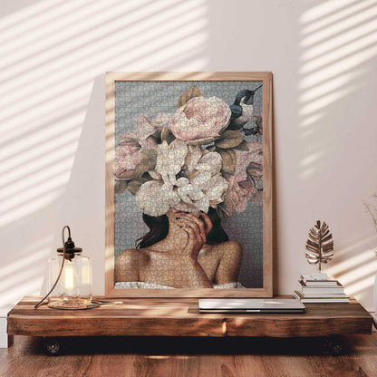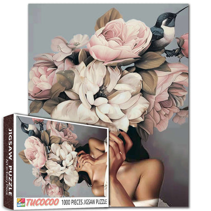 Plongez dans la scène apaisante d'une femme entourée de fleurs de magnolia et d'un colibri. L'atmosphère sereine de la beauté de la nature fait de ce puzzle un choix idéal pour des moments de détente, alliant art et tranquillité dans chaque pièce.