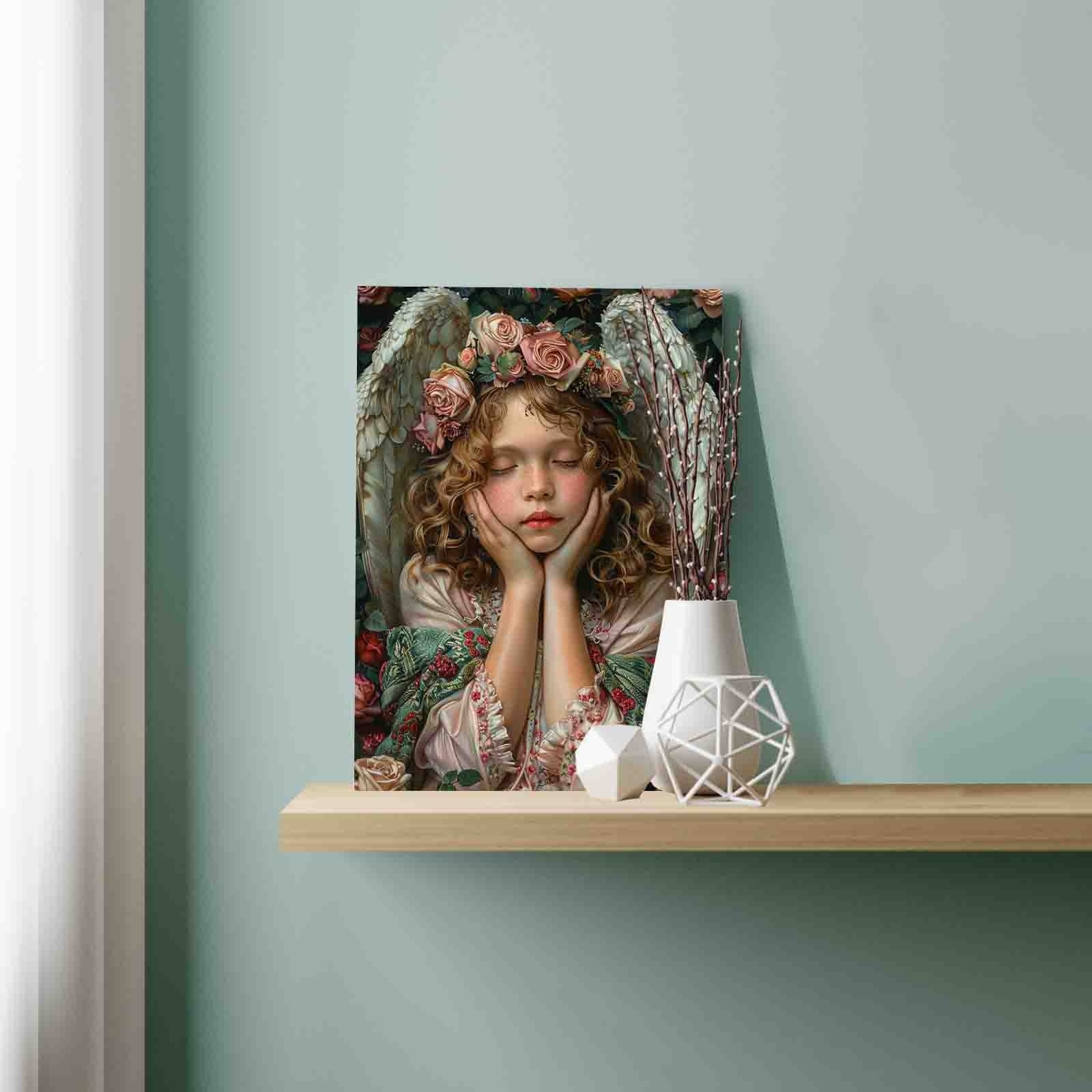 A serene moment captured in this stunning paint by numbers kit. This image features an angelic girl surrounded by lush roses, her peaceful expression radiates tranquility and beauty. The soft blend of pastel tones in the flowers and the gentle glow of the angel's wings create an aura of grace and purity. Perfect for those looking to immerse themselves in a calming, therapeutic painting experience. Enjoy bringing this lovely angel to life with your own artistic touch, as the intricate details of the petals, soft hues, and delicate skin come together beautifully with every brushstroke.
