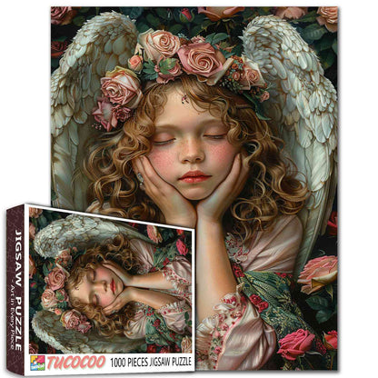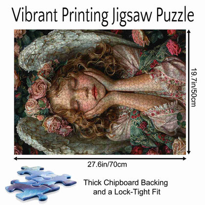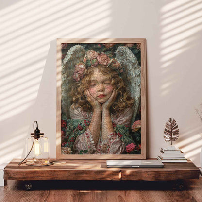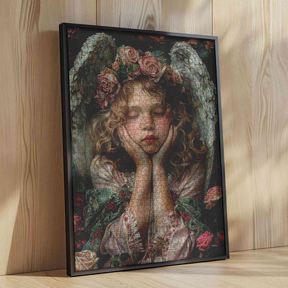 Let the peaceful aura of this jigsaw puzzle fill your space. As you assemble the image of an angelic figure surrounded by roses, experience a sense of serenity and calm. The intricate details of the angel’s beauty and the soft colors of the floral backdrop make this puzzle a perfect way to unwind and add a touch of elegance to your home.
