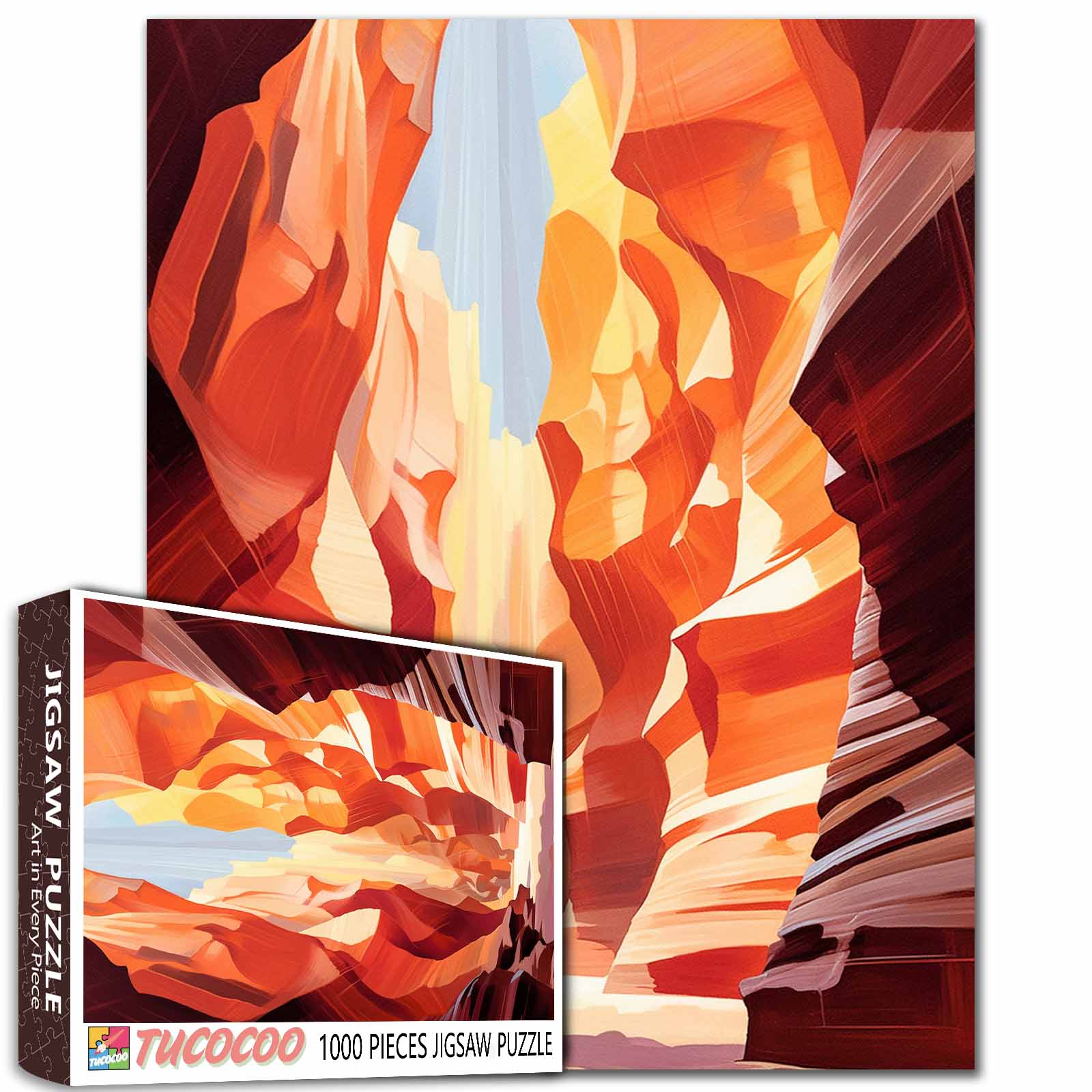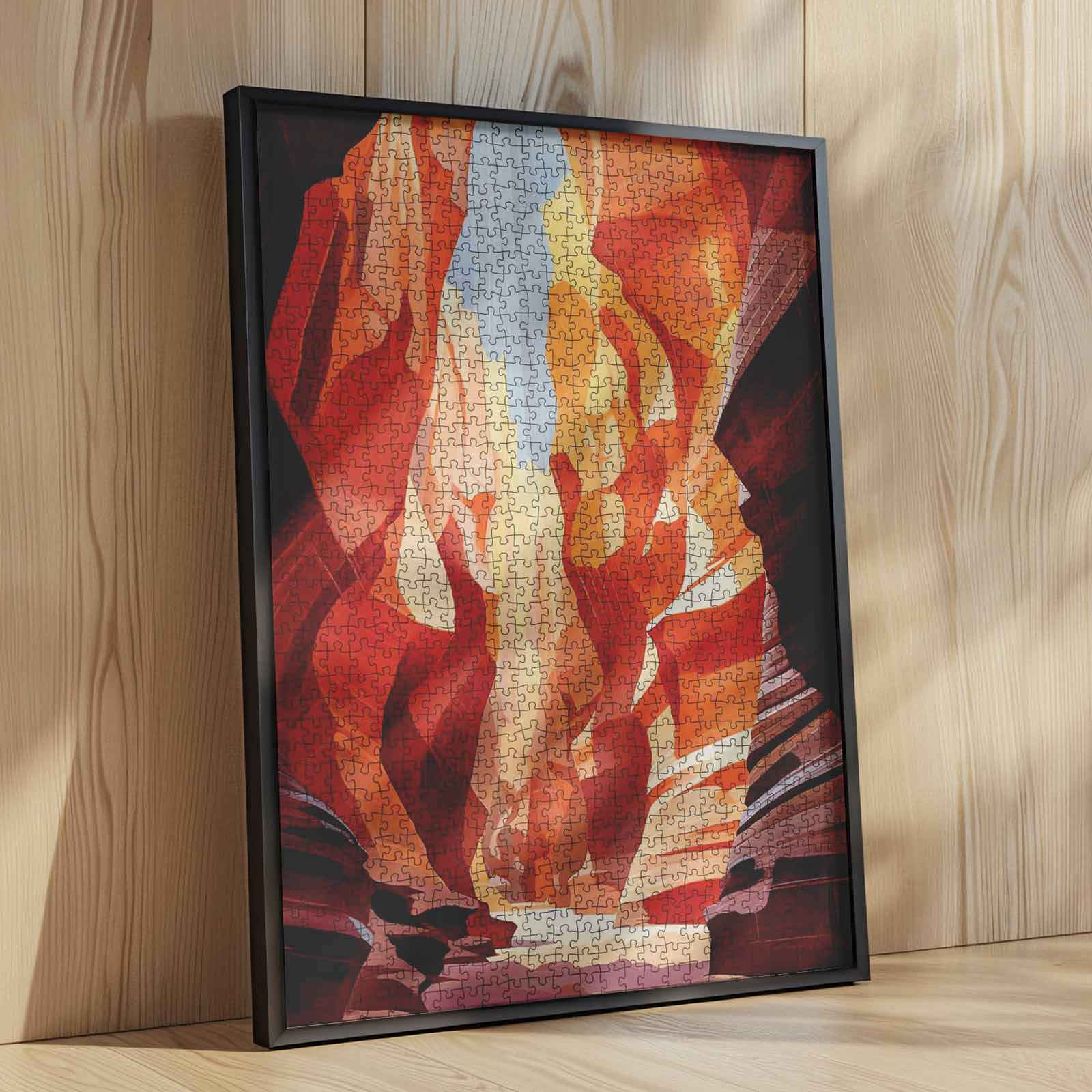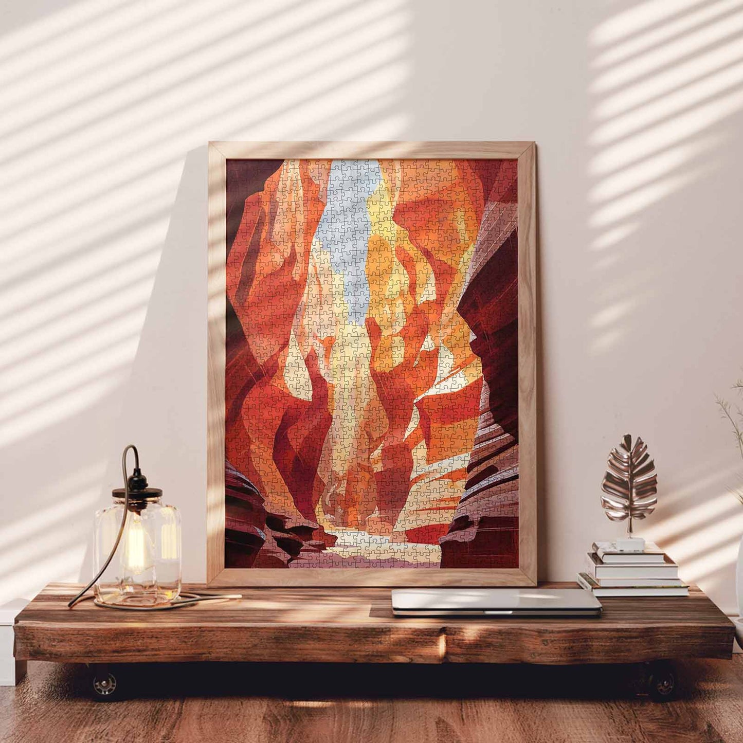 Carved by time and illuminated by shifting beams, the canyon walls twist like flame in shades of crimson, amber, and ivory. This stunning scene captures the heart of Antelope Canyon, where sunlight filters through narrow stone passages and paints the sandstone in glowing waves. As you assemble each piece, the patterns reveal nature’s brushstrokes—fluid, bold, and endlessly mesmerizing. A puzzle for lovers of natural wonders, peaceful solitude, and radiant desert beauty.