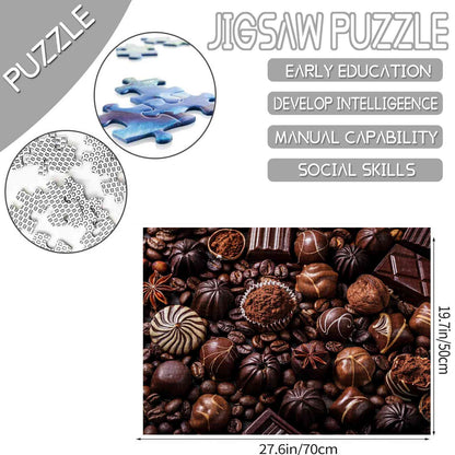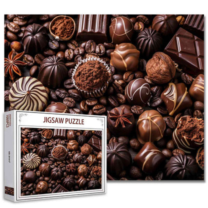 Immerse yourself in pure indulgence with Chocolate Bliss Jigsaw Puzzles. Featuring luxurious truffles, rich chocolate bars, and roasted coffee beans, this puzzle is a decadent treat for chocolate lovers and puzzle enthusiasts. Perfect as a gift or decor for your home.