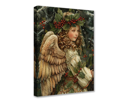 Christmas Angel with Holly Wreath Canvas Wall Art