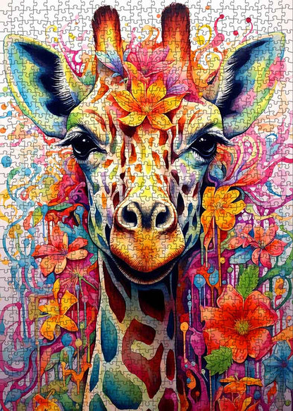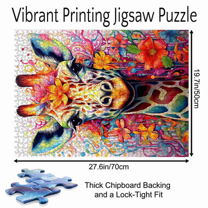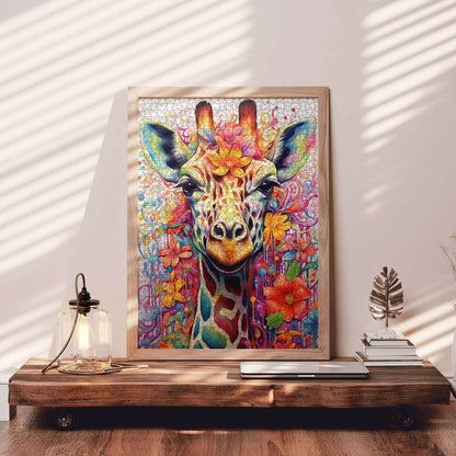 - This vibrant and colorful jigsaw puzzle features a stunning giraffe with a floral crown. It's the perfect puzzle for adults and kids alike, and a great way to relax and unwind.