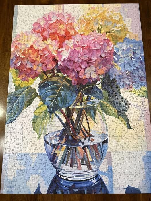 Challenge yourself with this beautiful 1000 piece jigsaw puzzle featuring a vibrant bouquet of hydrangeas in a vase. The intricate details of the flowers and the glass vase will provide hours of entertainment and relaxation. This puzzle is perfect for adults and is a great way to unwind after a long day. It also makes a great gift for any puzzle enthusiast.