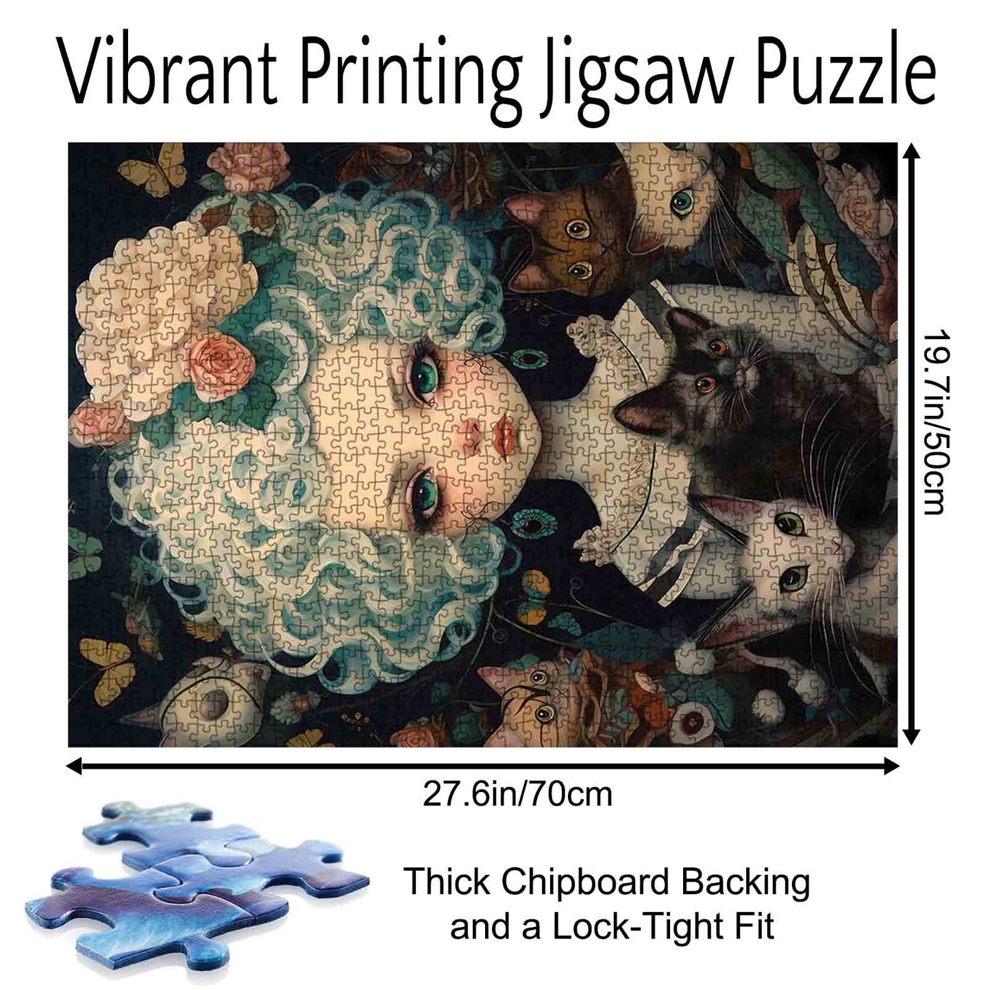 Curly-Haired Girl with Cats Jigsaw Puzzle
